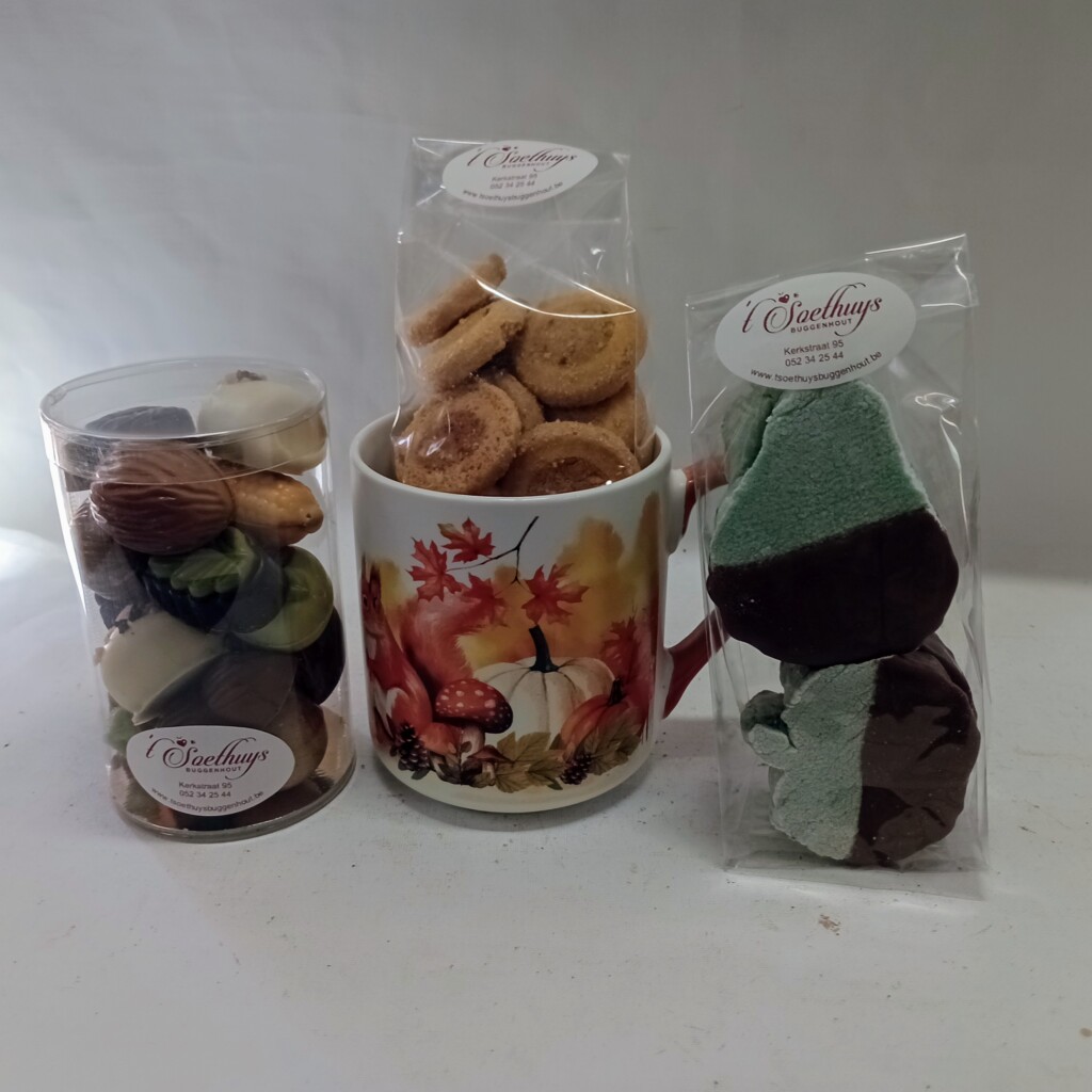 najaarsvruchten in chocolade, diverse vullingen, ca 230 gr